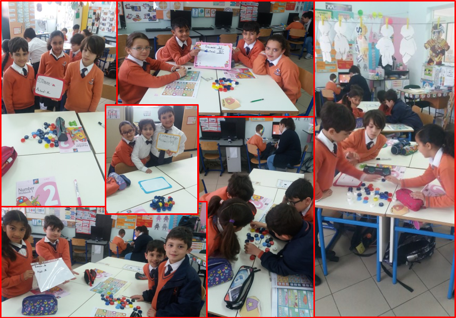 The year 3.1 students were learning about estimation through hands on activities. One of our activities was to guess (estimate) how many bottle caps I placed in a container. The students estimated the number and then, we counted all the bottle caps to verify the actual number and match it to the students’ estimations.