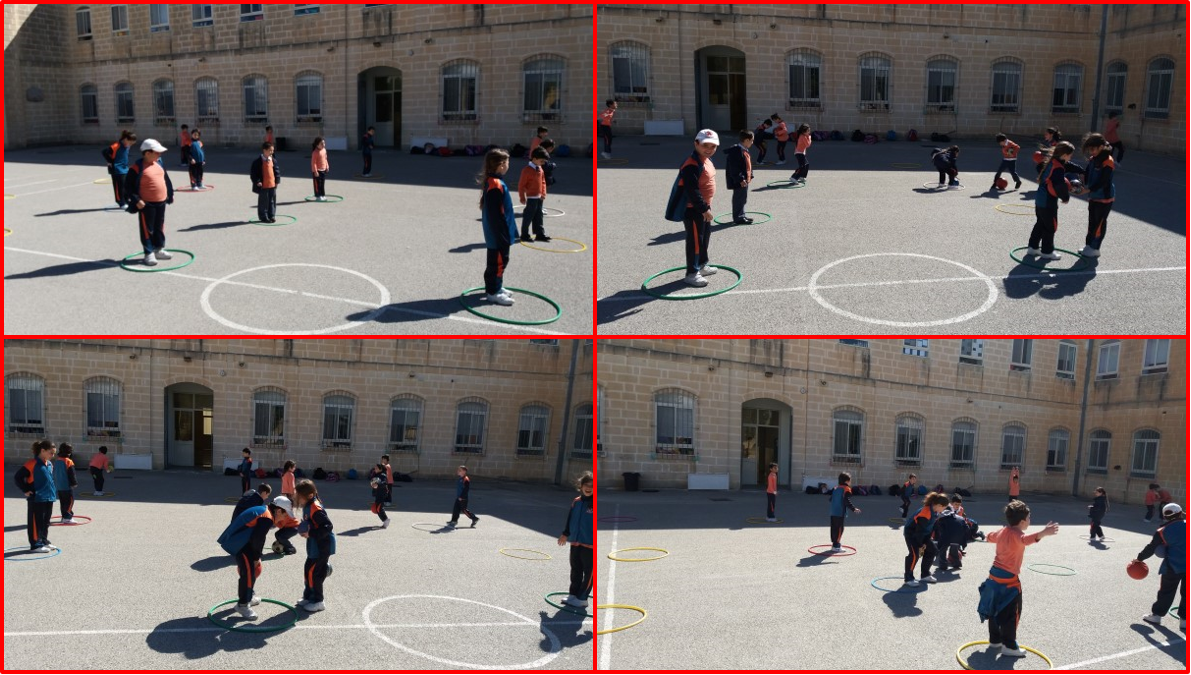 During one of our PE lessons, the students played a game called Kangaroo Relay. It is called this because the children have to hold a ball under each arm and another one between their knees. Then, they have to hop like a kangaroo to the next child in line, who takes all three balls and repeats the process. This relay is completed once all members of the team have had a turn.