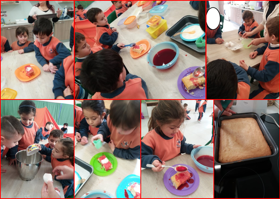 The students of K2.2 (Ms Felicia) and K2.1 (Ms Janice) prepared a simple Valentine’s Day treat. The children prepared the sponge where they had to sieve the flour, add eggs and water. The sponge was baked and left to cool down. Students cut it into small squares poured some melted jelly on the cakes. Finally they sprinkled some coconut flakes in the shape of a heart.