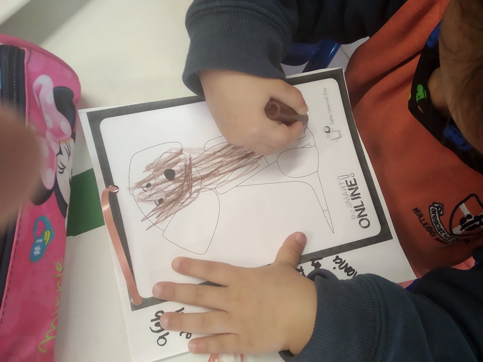 They were done given a dog template downloaded from the Be Smart online website sent earlier on, (as shown in picture). The teacher explained that this mascot is showing them that just as a dog or any other animal makes us feel safe and they are faithful, so can the internet be a safe tool BUT as yet we need to be supervised by adults.