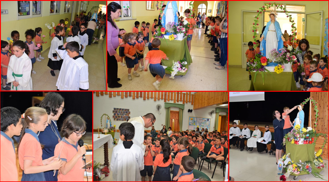 On 6th May 2015 the school celebrated the feast of Our Lady of Pompei. May is the month dedicated to Our Lady. All the students from kinder to year 6 went to Mgarr Parish Church where mass was celebrated by the newly appointed parish priest, Dun Kalcidon.