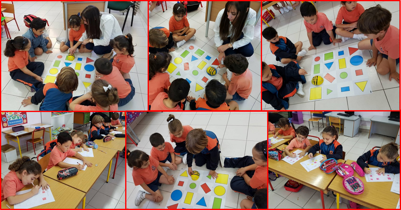 Finally, the students listened to clues given by the teacher and then, they moved the Bee Bot on the correct flat shapes.